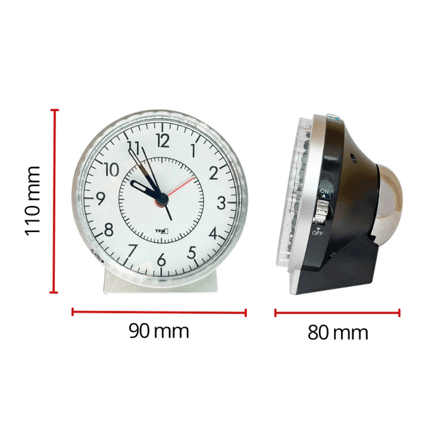 Der Wecker hat große, leicht ablesbare Zahlen und ist super einfach zu bedienen. Um den Alarm einzustellen, drehst du das Glas, bis der rote Zeiger auf die gewünschte Uhrzeit zeigt. Mit einer einfachen Schlummerfunktion kannst du den Alarm problemlos um 5 Minuten verschieben, wenn du etwas mehr Ruhezeit benötigst. Der Schlummerknopf aktiviert auch ein sanftes Licht, sodass du das Display leichter sehen kannst, wenn du die Uhrzeit im Dunkeln überprüfen möchtest.