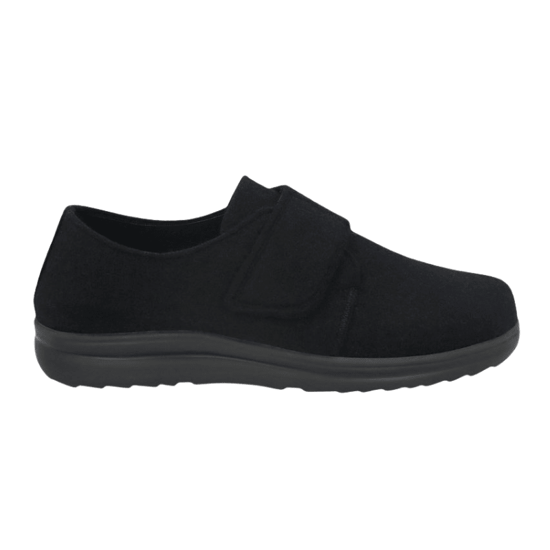 Den fleksible ydersål giver god komfort og stabilitet, mens den rummelige pasform gør skoen velegnet til sarte fødder.