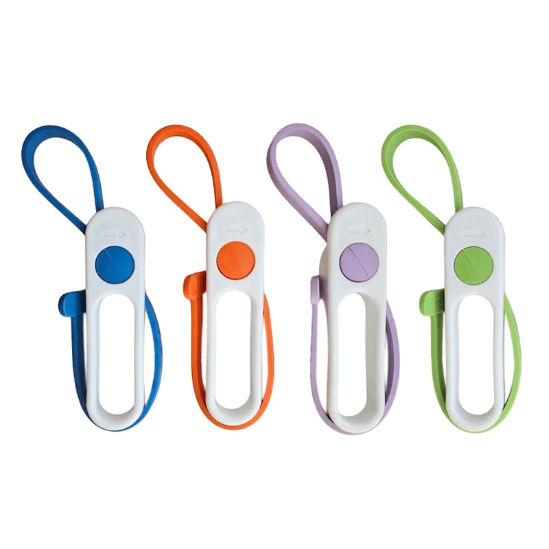Glas- og flaskeåbneren leveres i assorterede farver: grøn, blå, lilla eller orange.