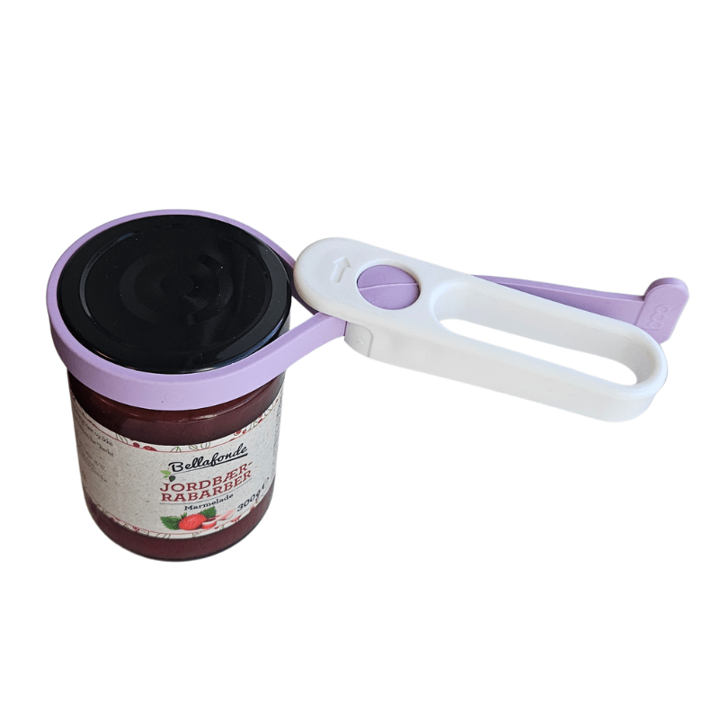 Smart multiåbner med gummirem, som gør det let at åbne glas med metallåg eller andre skruelåg. Multiåbneren er god til mindre låg.