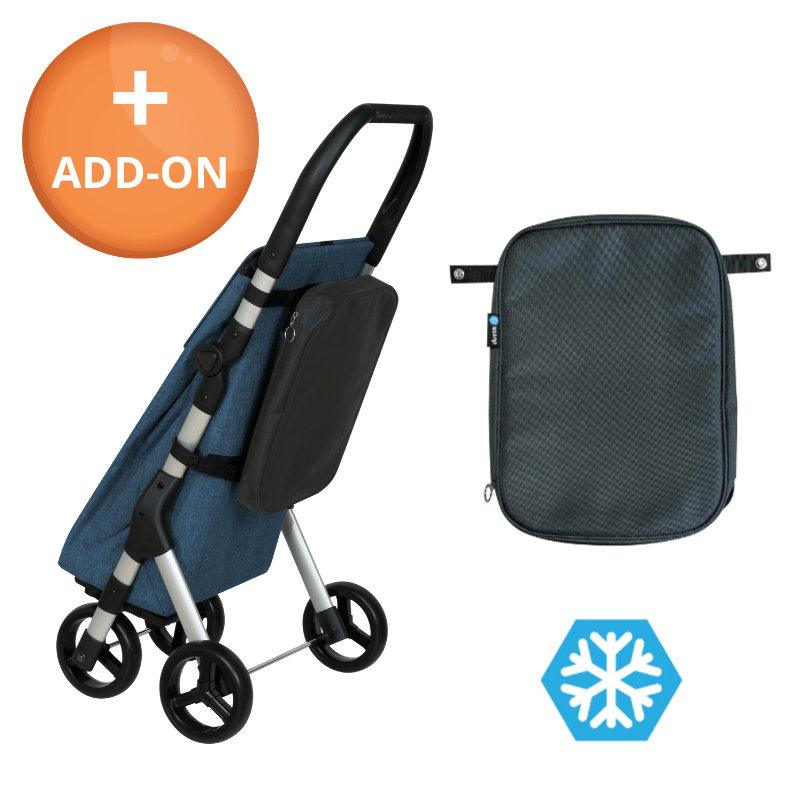 Ce modèle se distingue par la possibilité d'acheter une glacière amovible de 4,6 litres, qui se fixe facilement à l'arrière du caddie. La glacière est idéale pour les produits réfrigérés et garde vos aliments frais tout au long du chemin de retour.
