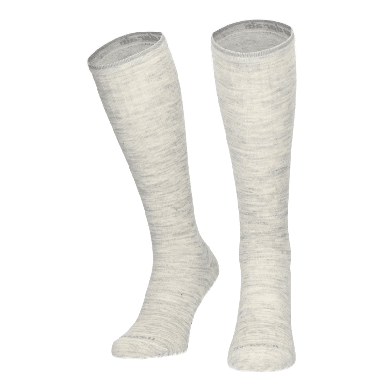 Chaussettes de compression modérée pour femme, en gris cendré chiné par Sockwell, conçues pour stimuler la circulation sanguine, apaiser les douleurs et soulager la sensation de pieds fatigués. Parfaites pour celles qui restent longtemps assises ou debout, pratiquent une activité physique, souffrent de pieds enflés ou voyagent fréquemment.