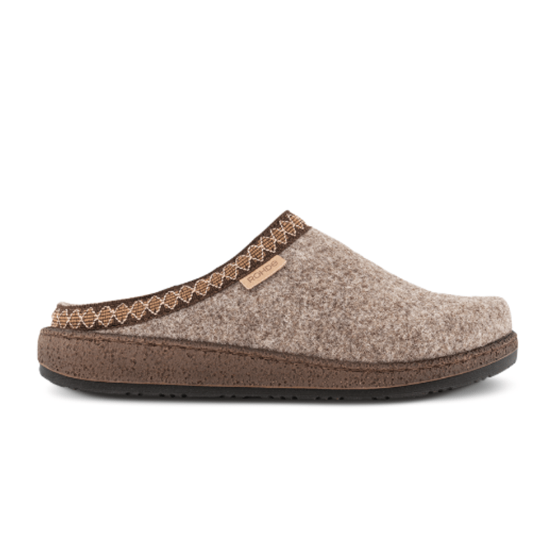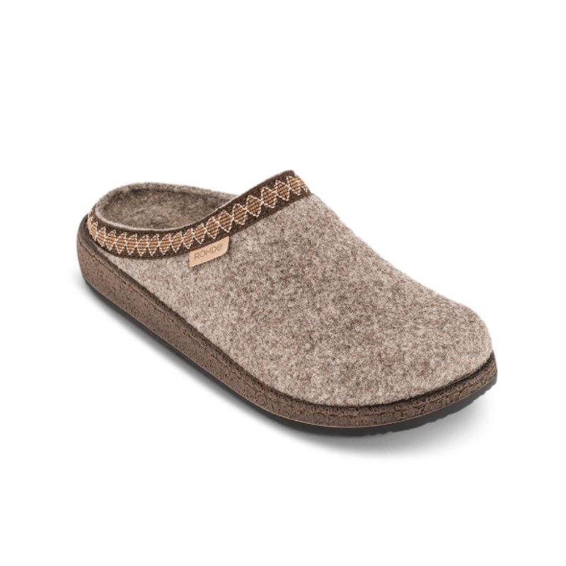 Pantoufles confortables pour femme Rohde en feutre doux de couleur brun clair, gardant vos pieds bien au chaud toute la journée.