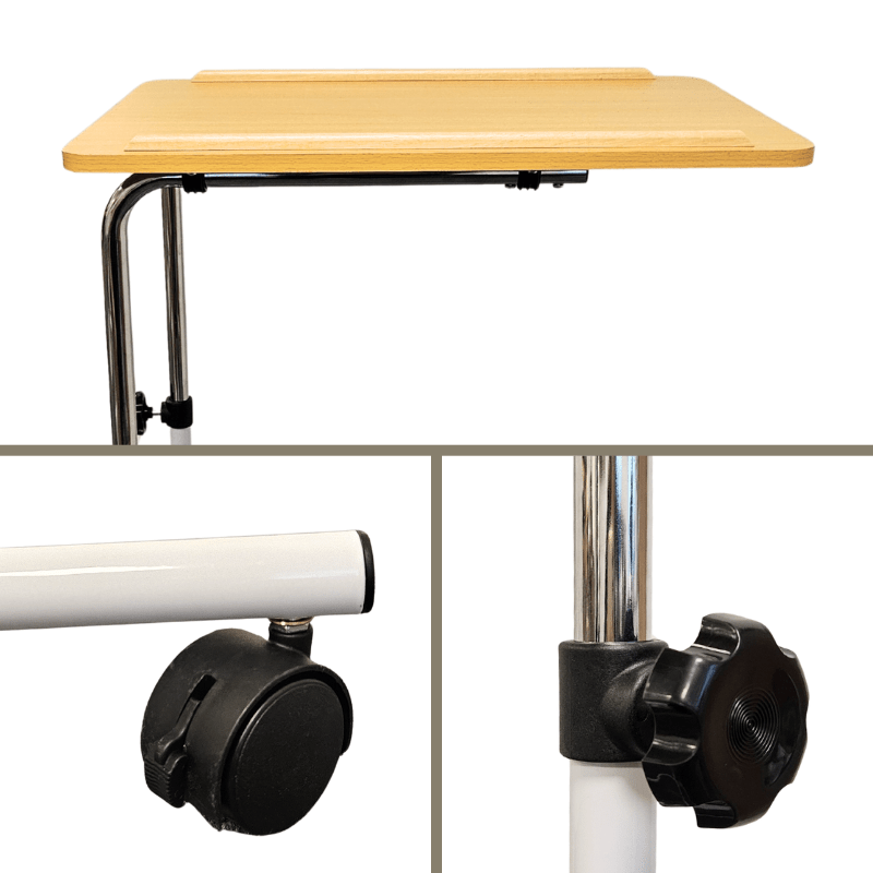 Cette table de lit pratique est conçue pour s'adapter parfaitement autour de meubles tels que le lit, le fauteuil ou le fauteuil roulant. Elle vous offre une solution flexible et confortable, peu importe où vous souhaitez l'utiliser.