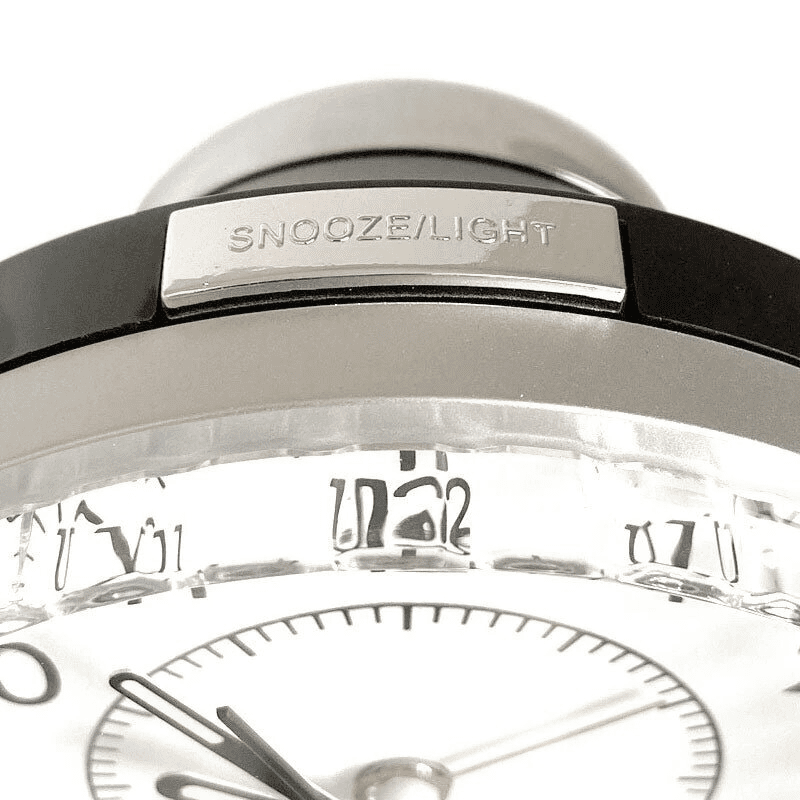 Le réveil possède de grands chiffres faciles à lire et est très simple à utiliser. Pour régler l'alarme, tournez le verre jusqu'à ce que l'aiguille rouge indique l'heure souhaitée. Grâce à une simple fonction de snooze, vous pouvez facilement reporter l'alarme de 5 minutes si vous avez besoin de plus de temps de repos. Le bouton de snooze active également une lumière douce, vous facilitant la lecture de l'écran si vous souhaitez vérifier l'heure dans l'obscurité.