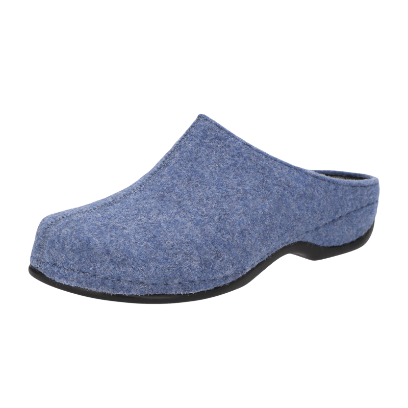 Bequemer Hausschuh von Berkemann aus blauem Filz, der an kalten Tagen Wärme und Komfort bietet. Das weiche Filzmaterial passt sich dem Fuß an und sorgt für eine leichte und flexible Passform.