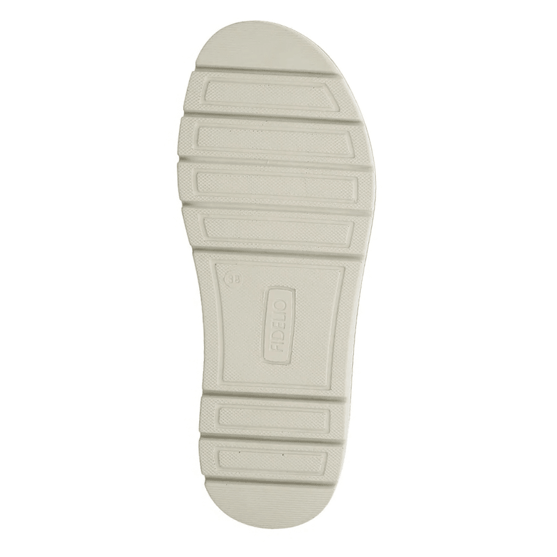 Die herausnehmbare Innensohle besitzt eine luftgepolsterte Oberschicht, die optimale Unterstützung für den gesamten Fuß bietet. Die Sandale ist mit einer flexiblen und stoßdämpfenden Außensohle aus leichtem Gummi mit einem kleinen Absatz von 3 cm ausgestattet, die für einen sicheren und rutschfesten Halt sorgt.